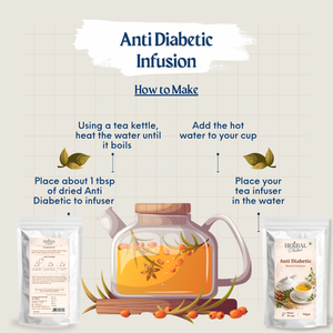 - Add 1 teaspoon of Anti Diabetic Herbal Infusion to 200 ml of boiling water.
