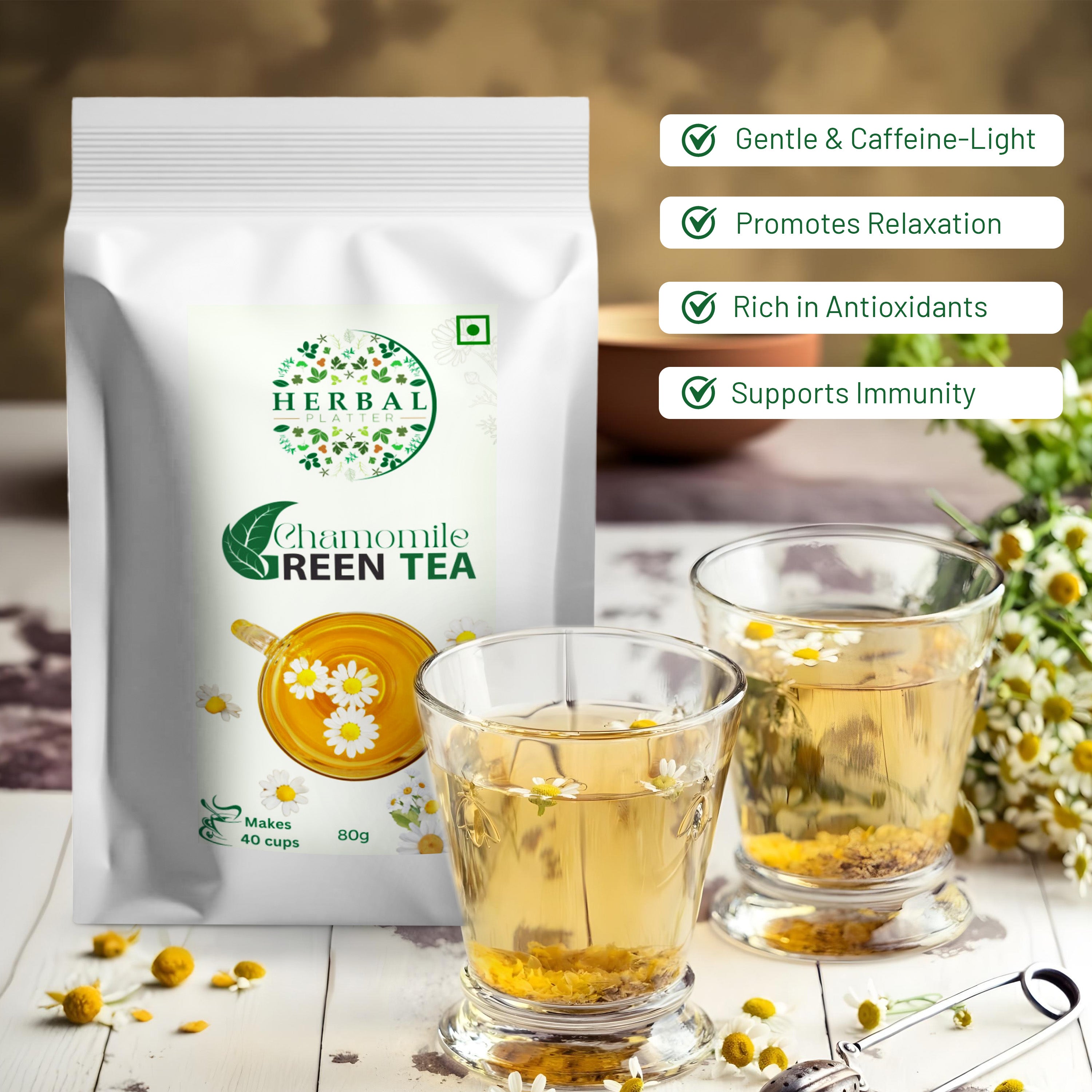 Chamomile Green Tea Infusion for Restful Sleep, Balanced Well-being, and Nourished Skin