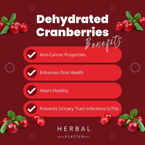 Introducing Herbal Platter Dehydrated Cranberry - the ultimate snack for those seeking a burst of tangy and sweet flavor in a convenient and nutritious package. These dried cranberries offer a delightful snacking experience while delivering an array of impressive benefits.