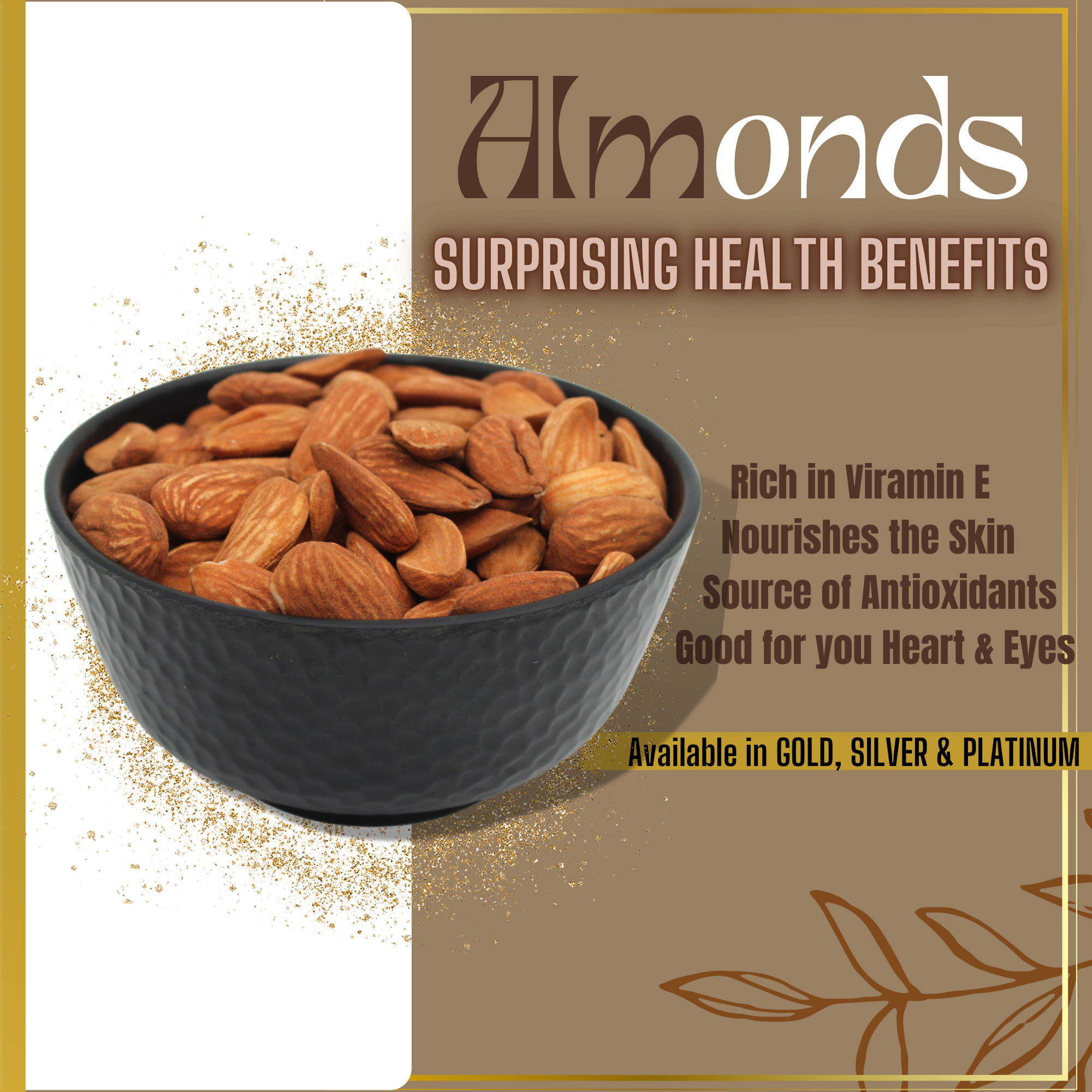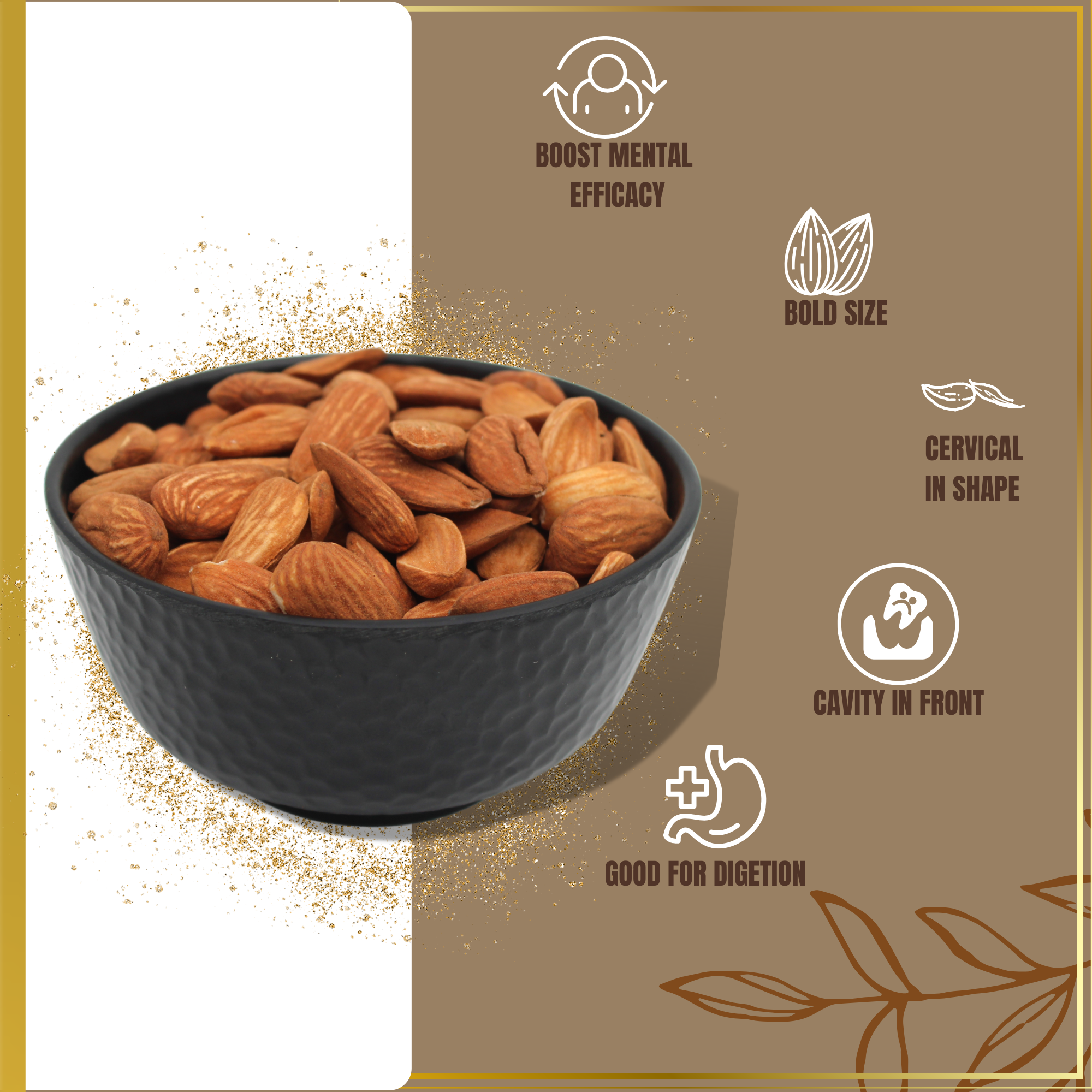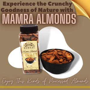 Mamra Almonds Gold are known as the king of all almonds — rare, handpicked, and naturally grown without any chemical processing. This premium grade is cherished for its intense crunch, sweet buttery taste, and exceptionally high natural oil content, making it a true luxury for health and taste.